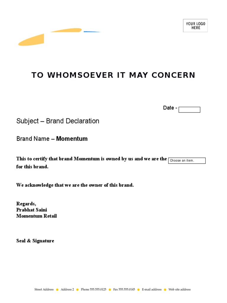 Flipkart Brand Authorization Letter Sample Get Free Letter Templates Print Or Download